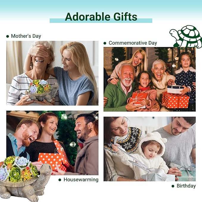 - Perfect Garden Decoration: This solar powered Succulent Turtle Statue is suitable for yard, garden, trees, flowers, flowerbed, fence, walkway decoration. You can enjoy vivid color during the daytime and soft light at night