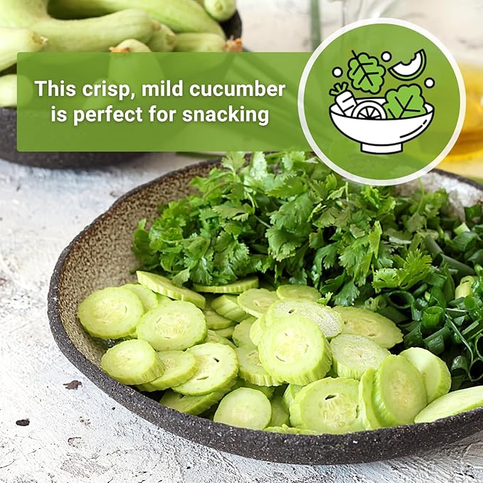 - Enjoy Fresh Cucumbers - Will produce long straight cucumbers if allowed to climb a trellis, whether outdoors, in a container, or under a greenhouse. Cucumbers are great in salads, mini English sandwiches, drinks or just eaten plain. This variety makes an unusual yet tasty option for pickles. Cucumbers are a must for many Japanese and Asian dishes.