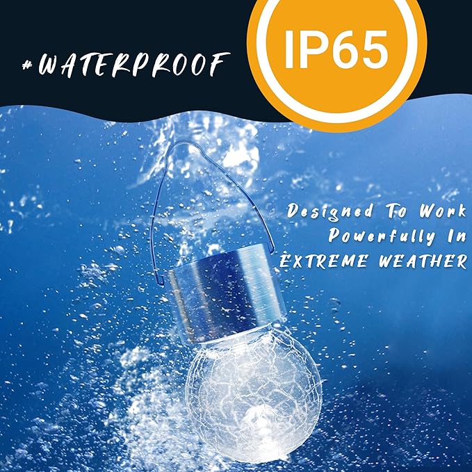 GIGALUMI 8 Pack Solar Hanging Lights, Christmas Decoration Lights with Multi-Color Changing Cracked Glass Hanging Ball Solar Outdoor Lights Waterproof Solar Lanterns for Garden, Yard, Patio, Lawn