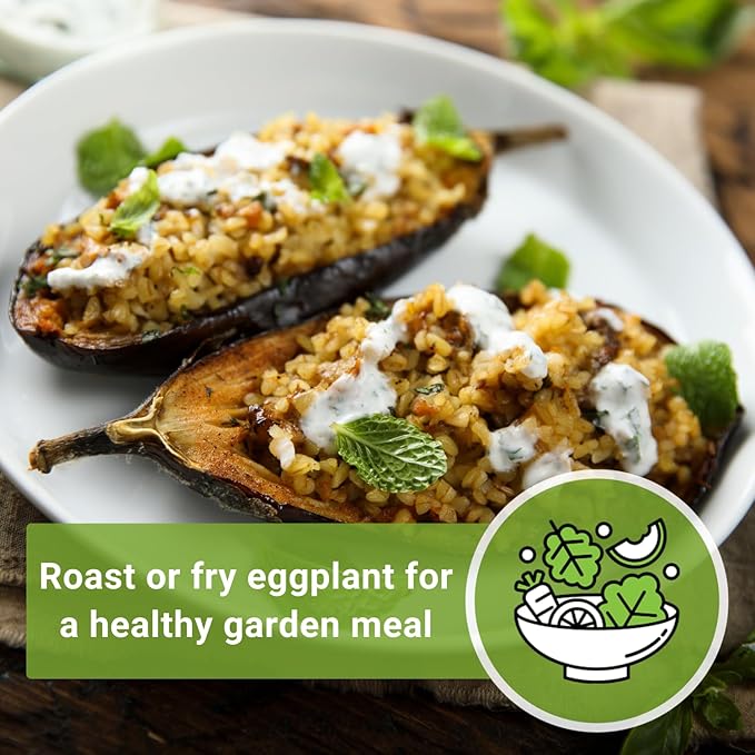 Sow Right Seeds - Black Beauty Eggplant Seed for Planting - Non-GMO Heirloom Packet with Instructions to Plant an Outdoor Home Vegetable Garden - Large Round Fruits, Deep Purple Variety (2)