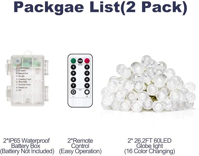 - 【What You Get:】 2 Pack 26.2FT/8M 60 LED battery operated LED Globe String lights with remote control and our YoTelim’s professional & kind service. Customer’s satisfaction is extremely important to us, If you have any question on the battery powered led star lights , Please don’t hesitate to contact us. We will do our best to help you to solve it.