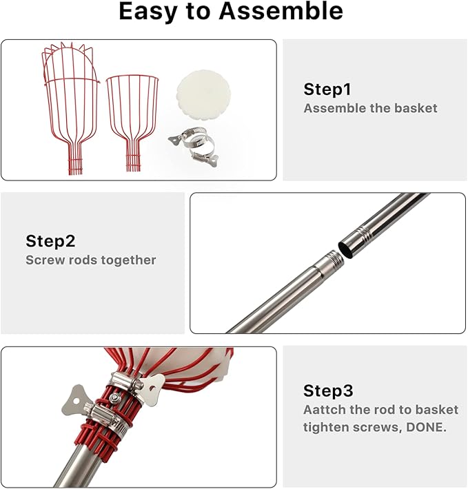 - 【Incredible Simple Installition】The unique design makes the fruit picker could be installed within 2 minutes and come to use, the disassemble and the store will also be really simple.