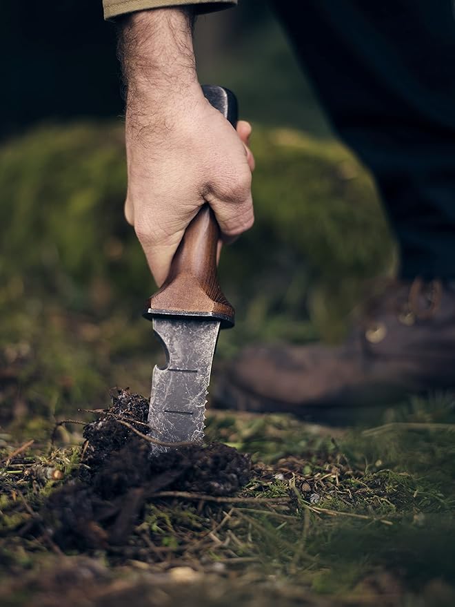 - Versatile Garden Tools: The dense, smooth, and durable walnut handle seamlessly fits with the heat-tempered pointed blade for a hori hori knife that feels good in your hand. The ambidextrous use of walnut handle gardening hand tools with a flat pommel base is designed for left and right-handed users. The hori hori garden knife handle features a smooth, comfortable grip