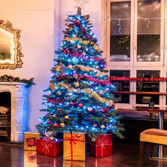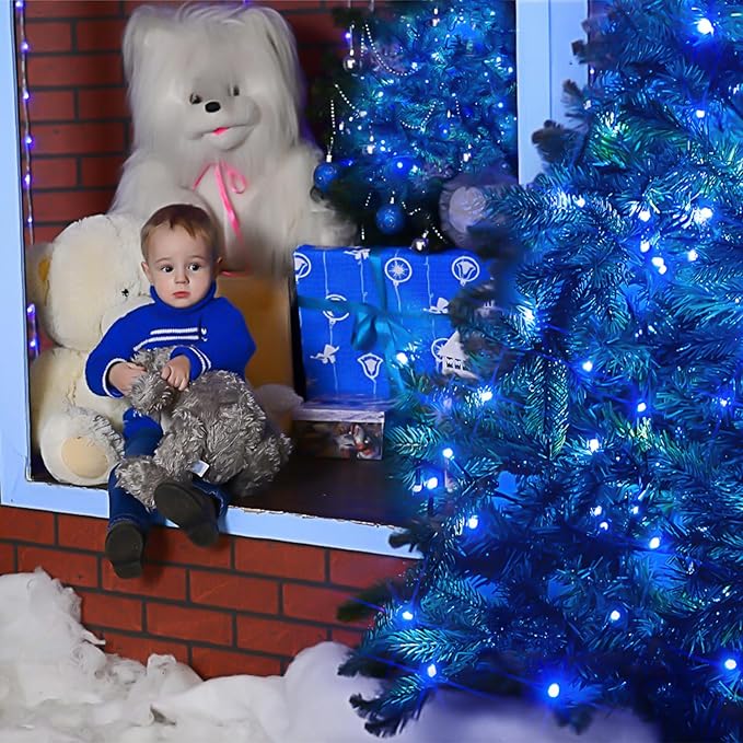 - Why Choose This Blue Christmas String Lights for Indoor and Outdoor - Super Bright with Energy Save Bulbs, Safer Plug in(UL588 Approved), Waterproof, Connectable, 8 Lighting Modes, Fantastic Decoration, Gift Box
