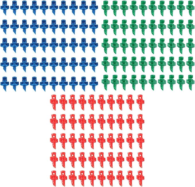 - Size:1/2inch(13mm)*13/16inch(21mm);Package Includes: 50 Pcs Micro Sprayers with 90 Degree Fan Jet Spray Pattern, 50 Pcs Micro Sprayers with 180 Degree Fan Jet Spray Pattern, 50 Pcs Micro Sprayers with 360 Degree Fan Jet Spray Pattern,.