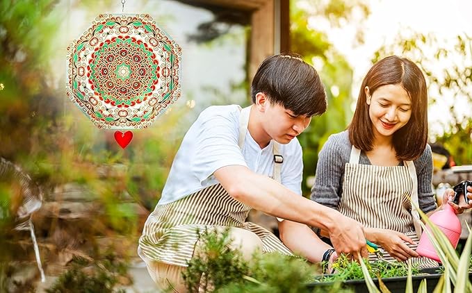 - Garden Decor with Mesmerizing Burst of Colors - Vibrant bursts of color and fun comes alive with this 3D Mandala Flame Wind Spinner. Use the swivel hook to hang it on a tree, wall, balcony, window, garden etc. as part of your outdoor decorations for patio