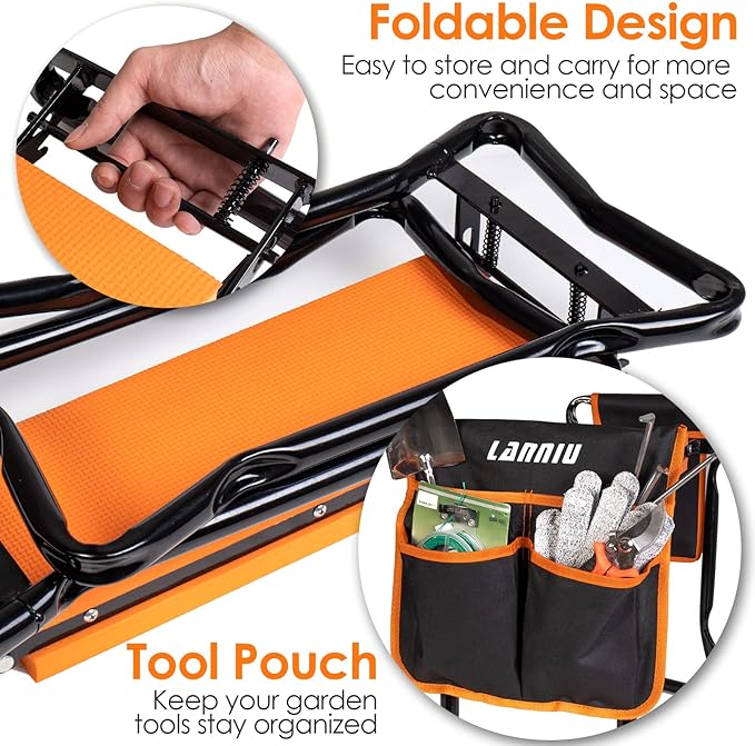 - Humanized Design: Super soft and thick EVA foam pad for a comfortable experience when kneeling. Two ex-large tool bags with four pockets to keep all your garden tools stay organized and take the way on the go. A detachable belt allows the kit to be hung around the waist or carried on the shoulder for better convenience. The foldable design is always there, all this just to provide a good and comfortable user experience for you.