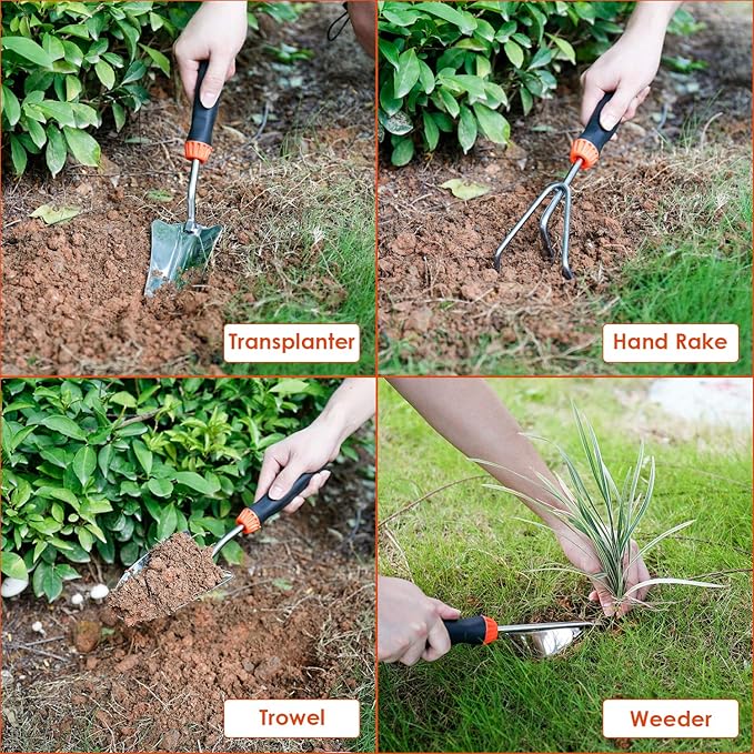 - 【Sturdy Stainless Steel】Our heavy-duty gardening kit for men is constructed of stainless steel, which inhibits rust and guarantees durability. It is lightweight, so you can use it flexibly for gardening work, and your hands are not easily fatigued.The non-slip, soft rubber grip handle makes them a pleasure to use. Additionally, gardening comfort is greatly enhanced by the ergonomic design.