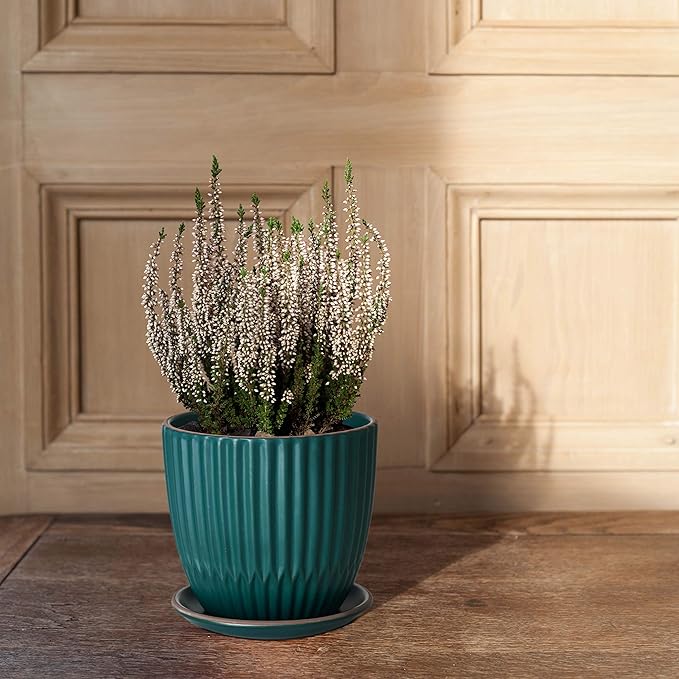 - Chic Design: Chic aesthetic to your home with ribbed pattern ceramic pot.