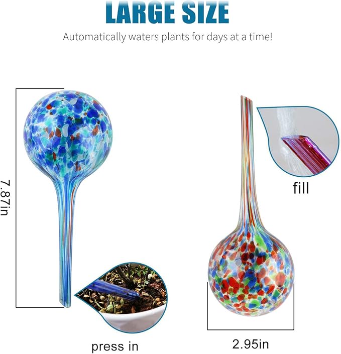 - Grow healthy plants. This set of 4/6/8 decorative glass watering globes are a perfect automatic watering system for your small indoor or outdoor plants. No more over or under watering your plants! Self-watering bulbs slowly release the perfect amount of water needed into the soil to feed flowers, herbs and other plants.
