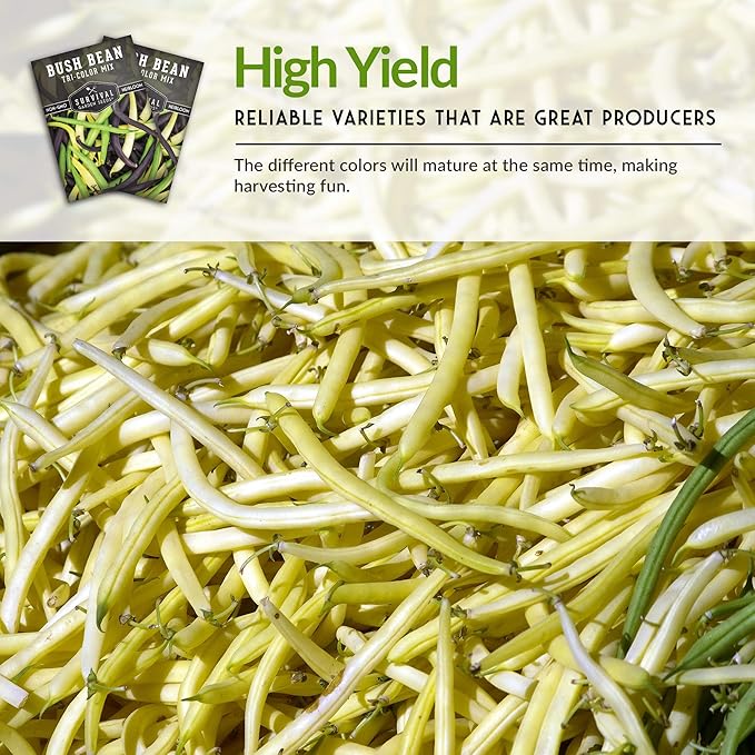 Survival Garden Seeds - Tri-Color Bean Seed for Planting - Packet with Instructions to Plant and Grow Yellow, Purple, and Green Bush Beans in Your Home Vegetable Garden - Non-GMO Heirloom Variety