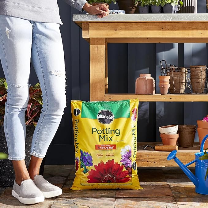 - Miracle-Gro Potting Mix feeds container plants for up to 6 months - for more blooms for more color (vs. unfed plants)