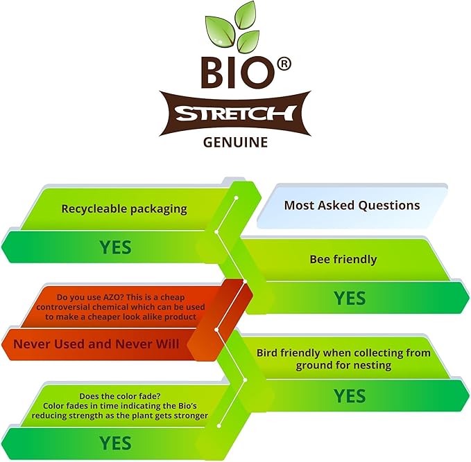 - SOFT, STRONG & STRETCHY - Biostretch Garden Plant Ties are made from premium green fabric that is soft, strong, and stretchy. Reduce waste by easily cutting to your desired length and provide support for your delicate indoor and outdoor plants.