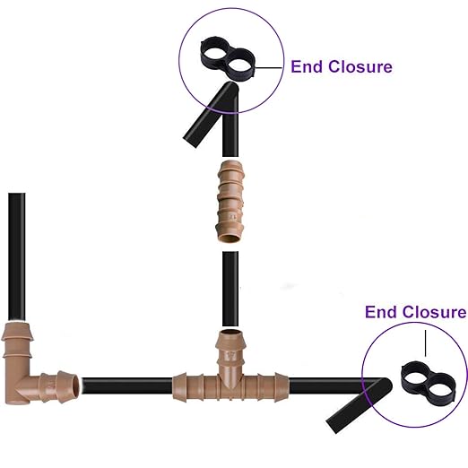 - 【Easy to Install】: Quick and simple to install without any additional tools. plug the end of your poly tubing or drip line with these drip irrigation end caps. Remove and re-install without glue, tools, or clamps.