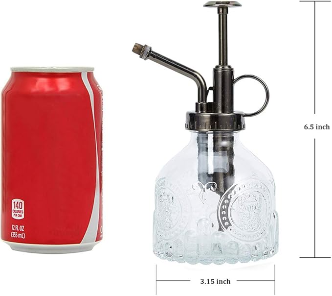 - The vintage glass plant mister has a convenient ring-finger holder, it's more easy to use and comfortable to spray plants.