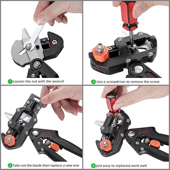 - REPLACEABLE GRAFTING BLADES: The grafting kit can handle both scion and rootstock 1/6 ”- 1/2 ” in diameter perfectly. Blades are consumables and regular maintainence is needed.