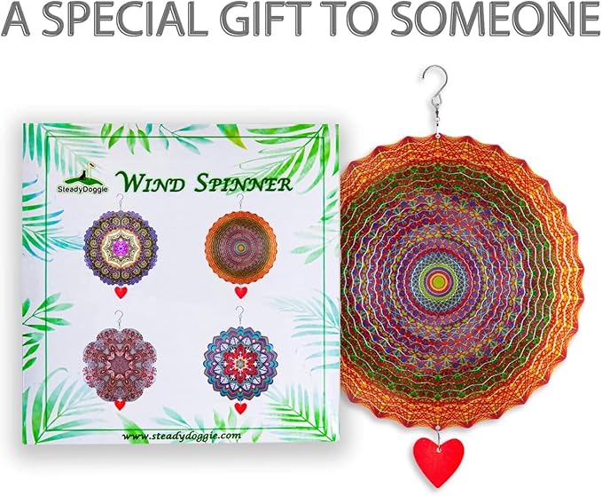 - Mesmerizing Garden Decor: Transform your space with a 12-inch 3D Mandala Flame outdoor wind spinners for yard decor; use the included swivel hook to hang it on a tree, balcony, or window; adds a burst of vibrant colors to any garden or patio