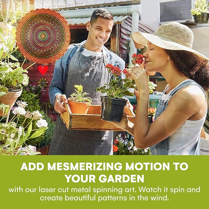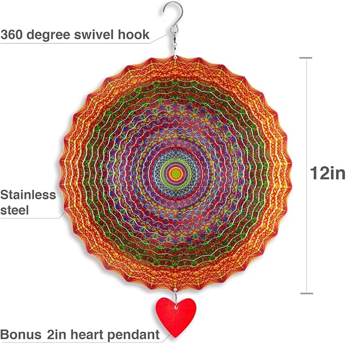 - Perfect Size for Any Space: This mandala garden 12” windspinner includes an additional 2-inch heart pendant; ideal for hanging in various locations, creating a captivating focal point in your outdoor decor