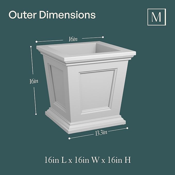 Mayne Fairfield 16-Inch Square Planter – Self-Watering, Weather-Resistant Planter for Flowers – Durable Outdoor Design for Patio, Porch, or Entryway