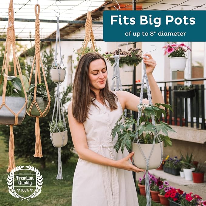 • Maximum Load - Each macrame plant hanger indoor and outdoor, can hold up to 12 pounds.