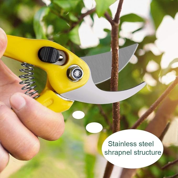 - 【HEAVY-DUTY STAINLESS STEEL PRUNING SHEARS】 Gardening hand tools pruning shears use the latest stainless steel shrapnel structure, save time and effort. Ideal for precise trimming to shape flowers and small plants.