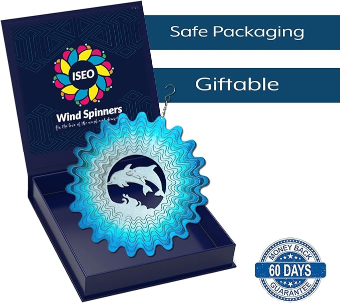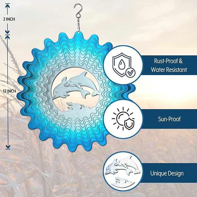 Dolphin Wind Spinners for Yard and Garden, Metal Dolphin Ornaments for Garden Décor, Outdoor Wind Spinner, Dolphin Gifts, Outdoor Garden Decoration, 12 inch Dolphin Wall Décor by ISEO