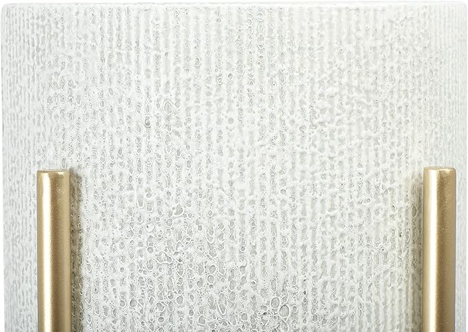 Main + Mesa Modern Boho Embossed Metal Planters with Stands, White and Gold, Set of 2 Sizes