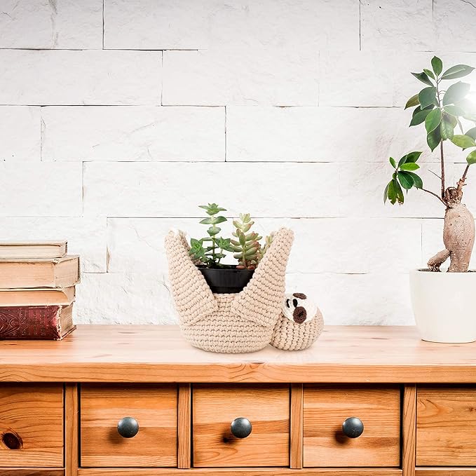 - Unique Crocheted Plant Hanger - Elevate your home with our exclusive sloth-themed crochet plant hanger indoor and outdoor decorators will love. The cute sloth design on our wall hanging planter adds a touch of charm to your space, and is a playful way to display your favorite plants and succulent pots.