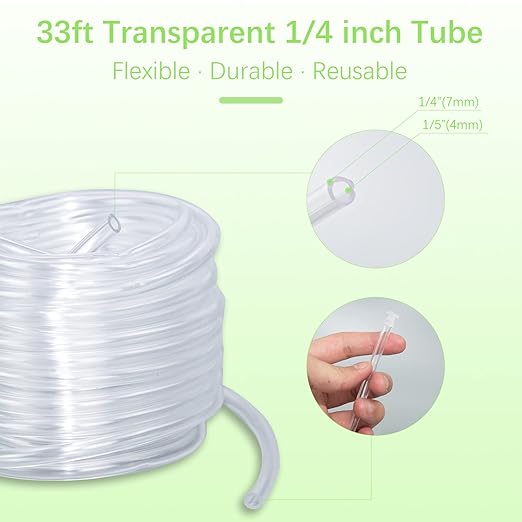 - Package included: 33ft 1/4 inch Tube*1, Tee Barbeds*5, Cross Fitting*1, Cooper Filter*1, Filter*1, Dripper*5, USB Cable*1