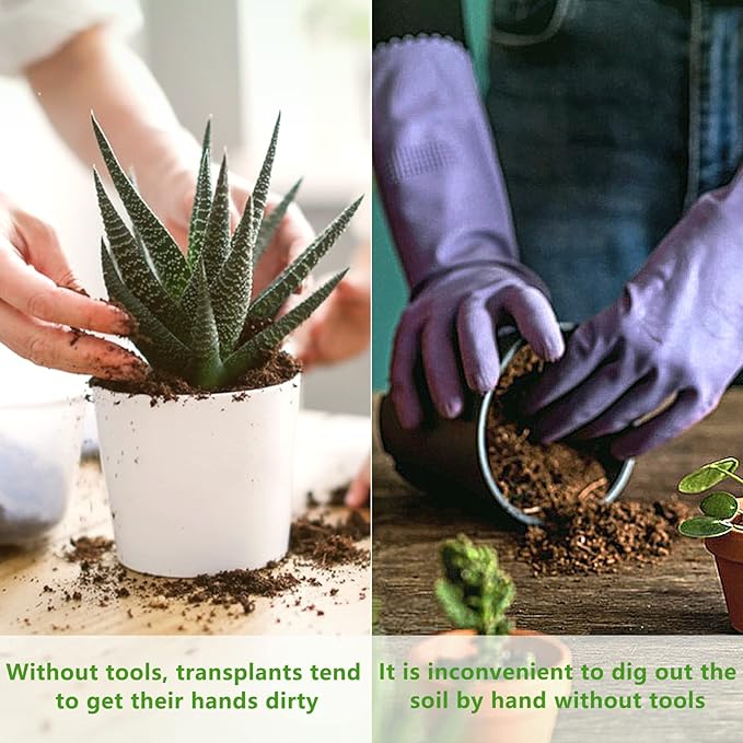 - ✅【Multi-Purpose】:Suit for digging, loosening soil, planting seeding, weeding, aerating, transplanting, fertilizing and more. Perfect Plant Pot tool gadget choice, Perfect for tending to small gardens and indoor plants requires.
