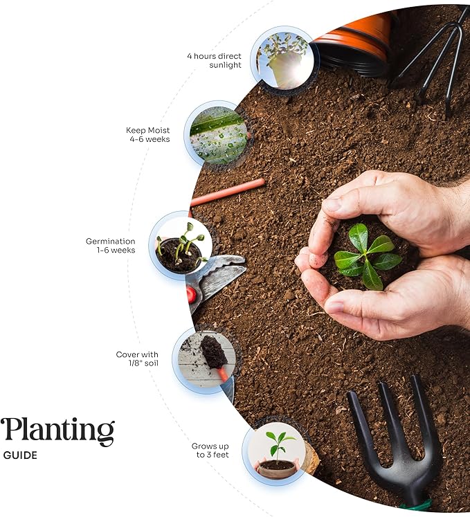 - Plant Instructions: Plant the seed paper 1/8" deep in soil. Keep moist for 4-6 weeks with 4 hours of daily sunlight. Watch them grow up to three feet tall.