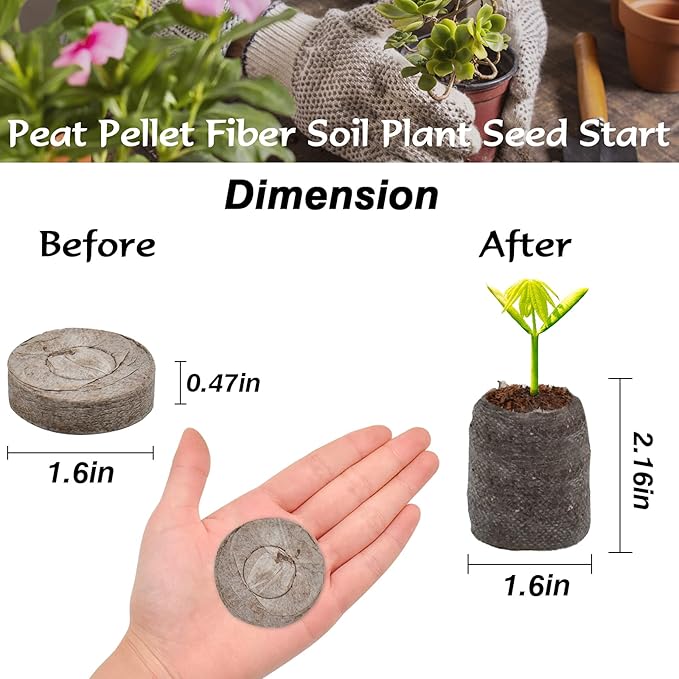 - 100 Pcs 40mm Peat Pellets: You will get 100pcs 40mm seed starter pods. Once the seedlings have grown, simply insert the entire seed starter or seedling into an outdoor terrace, deck planter or backyard garden. Since there is no root disturbance, it is easy to build plants. It could't be easier!