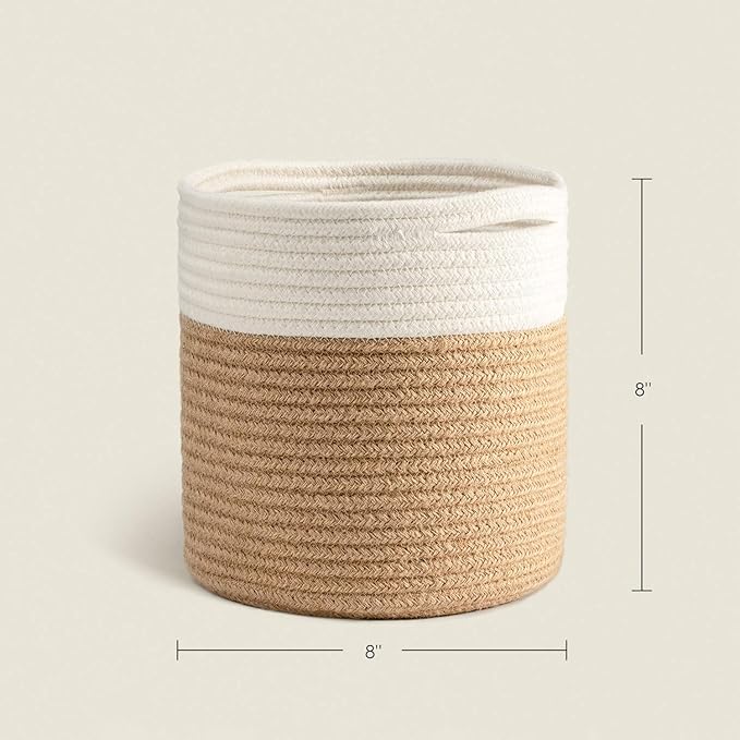 - Good Material and Size, Handcrafted meticulously with cotton and jute rope in a coiling method that results in a flexible textile that is stiff enough to hold its shape. Approximate size is 8 inches Diameter x 8 inches High