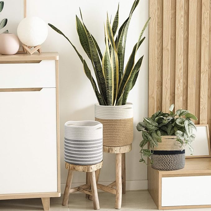 - Rustic Modern Home and Lifestyle, This striking black-bottomed hand woven cotton rope planter basket adds a modern flair to your favorite large plant for home, hotels, offices, and restaurants for an instant feeling of rustic simplicity