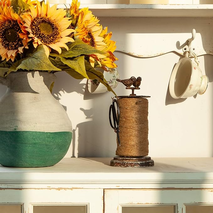- Vintage Design: Our jute twine spools is designed in rural retro style, with two lovely birds. It can add elegance and beauty to the space where you putted with it.