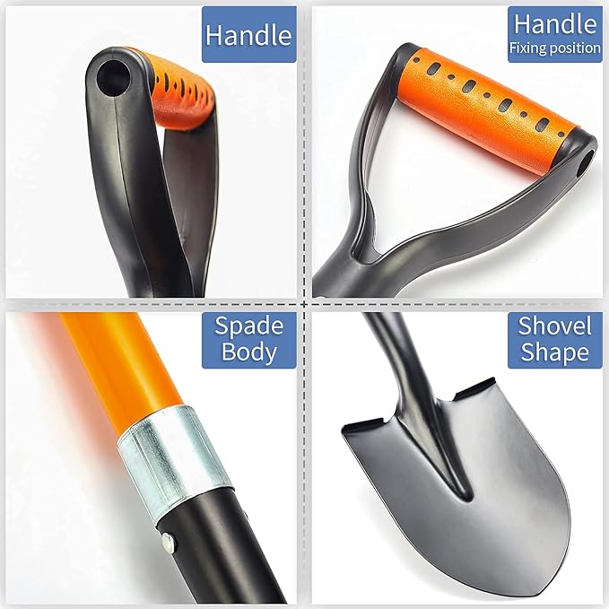 - 2. PERFECT STRUCTURE DESIGN–The D-shaped handle design can increase the grip strength of the hand and complete the work of digging shovel more easily shovel for digging,Smooth edges do not hurt your hands after long-term use