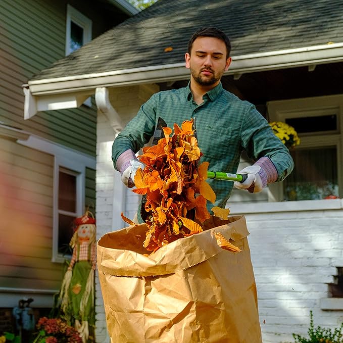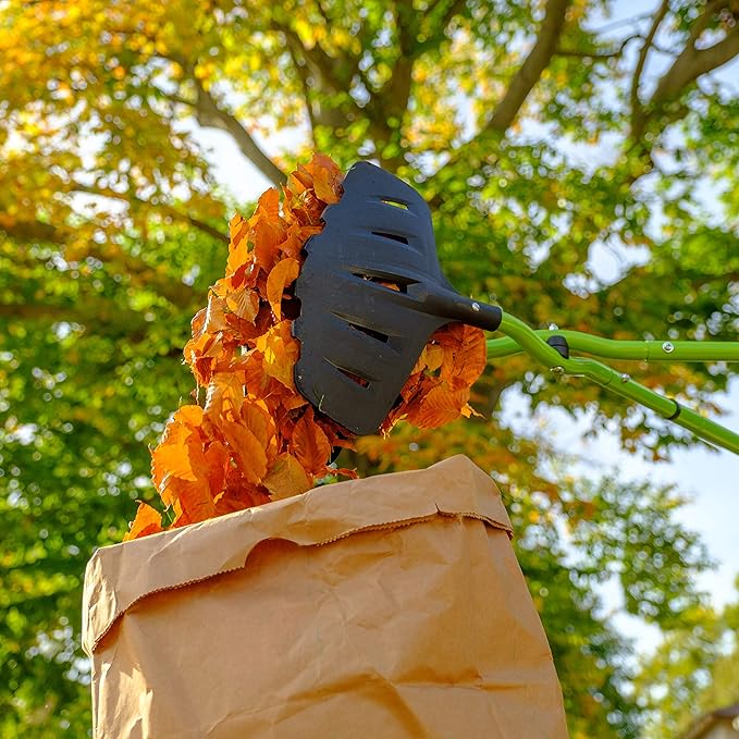 - Leaf grabber with heavy-duty poly-fiber jaws with teeth to hold on tight to leaves and other yard debris