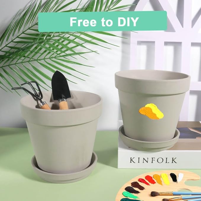 vensovo 6 Inch Grey Terracotta & Clay Pots for Plant with Saucer - 4 Pack Medium Terra Cotta Planter with Drainage Hole, Flowerpot for Indoor Outdoor Plants, Crafts, Wedding Favor