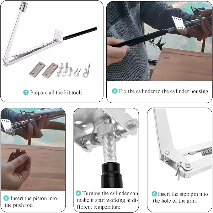 - 🌞【INDIVIDUALLY ADAPTABLE】Can be installed quickly and easily for the windows of common garden and greenhouses. You can steplessly adjust the opening angle by turning the cylinder and thus achieve the right ventilation for your bed.