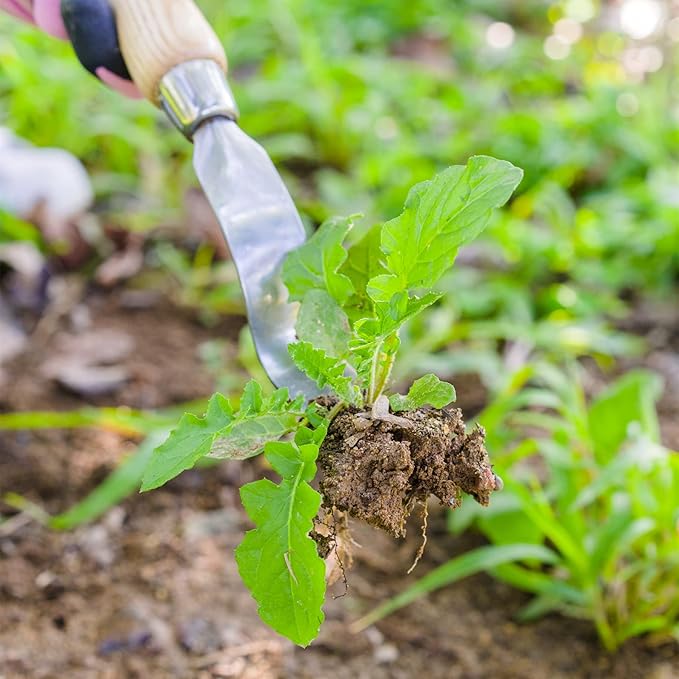 Berry&Bird Hand Weeder Tool, Stainless Steel Gardening Weed Puller, 12.1" Manual Weeding Removal Cutter Tool with Ash Wood Handle for Planting, Weeding, Flower & Vegetable Care in Garden Lawn Yard