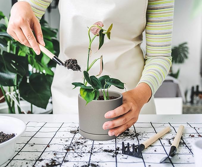 - Set of 4 Small Planter Pots - 4.6" Diameter (4.2" Inner Diameterrr) * 4.5" Height. Volume: 0.2 gallons; Potting Soil Needed 0.8 qt.