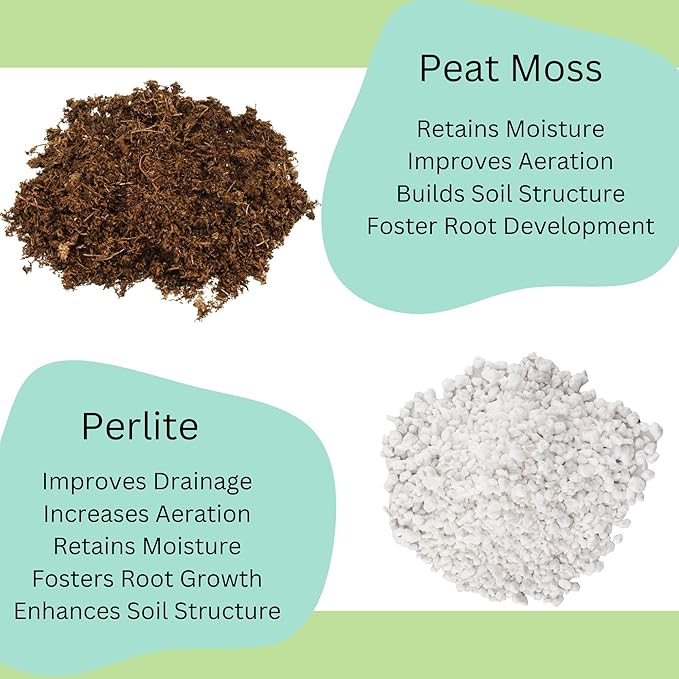 - Ingredients: Peat moss, horticultural perlite, worm castings, and lime