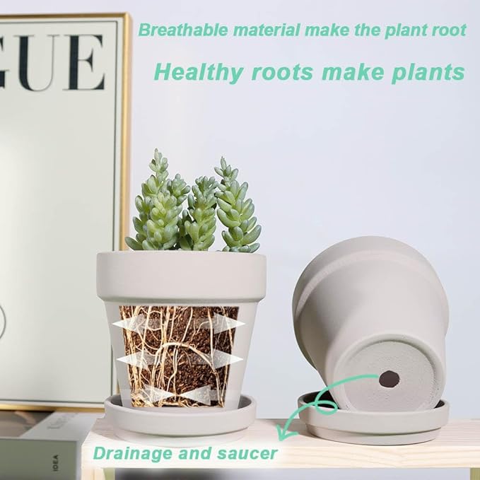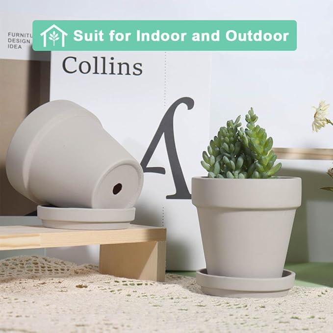 - 【Ideal for Indoor or Outdoor Usage】The terra cotta pots are included Saucer, so you can put them at your balcony, windowsill, table or working desk.