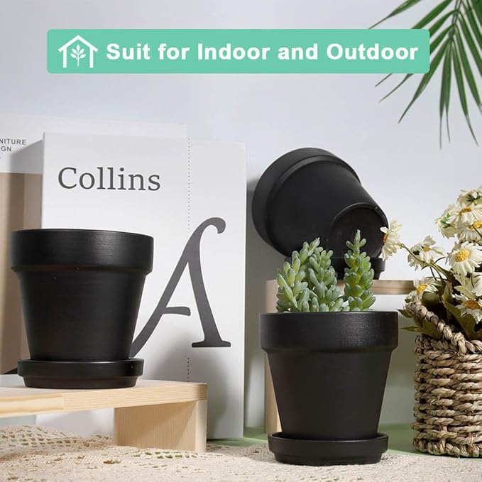 - 【Ideal for Indoor or Outdoor Usage】The terra cotta pots are included Saucer, so you can put them at your balcony, windowsill, table or working desk.