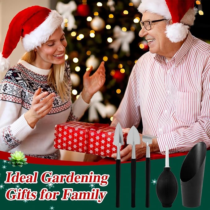- Sufficient Tools: You will receive 1 pieces of 39.4 × 39.4 inch plant transplanting tarp mat, 1 pair of gloves and 18 pieces of different mini succulent tools, including shove, spade, rack, air dust blower, scissors, curved mouth drip bottle and so on, meeting your different needs for various occasions.