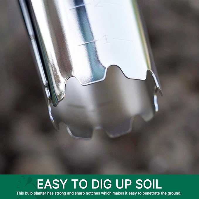 - EASY TO DIG UP SOIL - The bulb planter has a strong and sharp notch, which can easily penetrate the ground. You save a lot of time by inserting the planter into the ground, twisting and pulling everything you need for the soil. Excellent hole digging tool for plants and flowers.