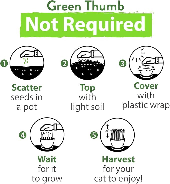 - Perfect Gift for Pet Parents: Thoughtfully packaged and easy to use, this 3-pack of cat grass seeds is a wonderful gift for any cat owner. It provides hours of stimulation for pets while also supporting their health. Whether you're shopping for your own pet or gifting a cat lover, this seed mix is as practical as it is appreciated.
