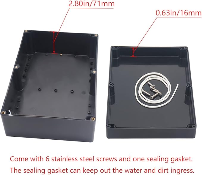 - 【Size】- Outer size of the project box: 10.35"x7.17"x3.74 "(263x182x95 mm); Inner size of the project box:10.04"x6.89"x3.43 "(255x175x86 mm)