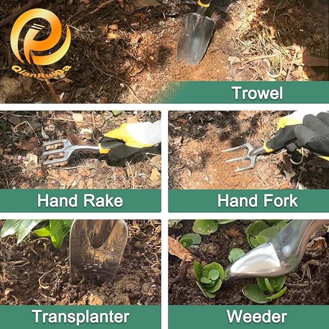 - 【Ergonomic Rubber Handle】All the garden tools are ergonomically engineered, their no-slip ergonomic rubber handles will reduce fatigues of your arm and hand, let you enjoy using the tools. Great for kids and seniors.