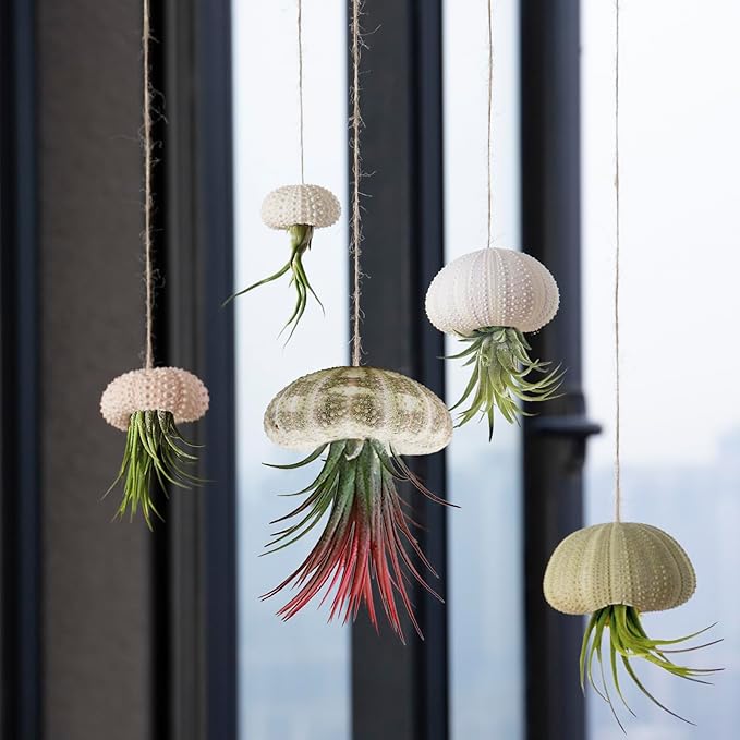 - For Air Plants: With holes in the bottom and top, our 5 pack of sea urchin shell hanging pots are perfect for you to put all kinds of inIonantha tillandsia air plant, bringing your home a pop of fresh and artistic feeling.